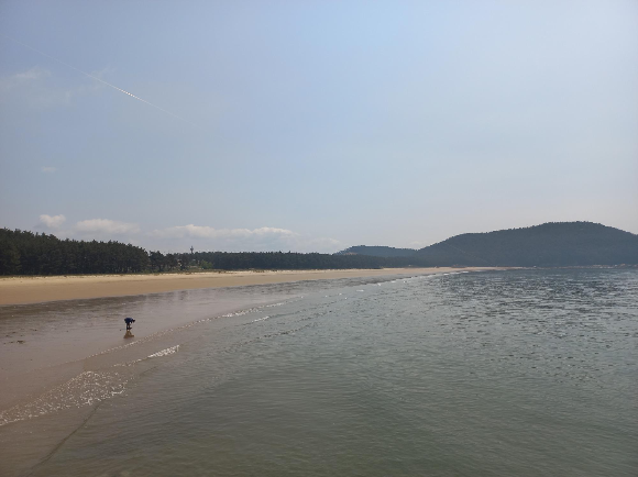 미풍의 바다 바람을 맞으며 모처럼 야유회 나들이에
