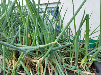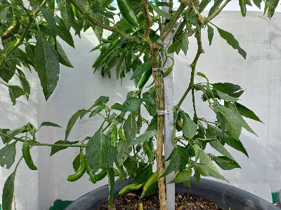 대형 화분에 심은 고추가 화분과 함께 옆으로 쓰러져 있다.
