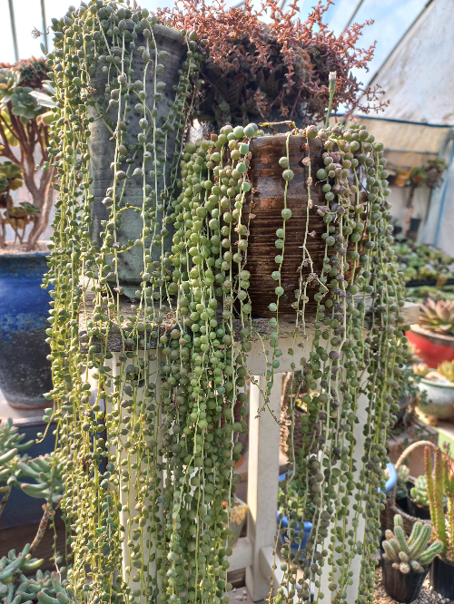 귀여운 알갱이가 초록색으로 길게 늘어지며 자라는 다육이다.