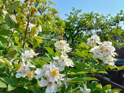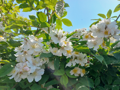 한 무더기 하얀 꽃 앞에서