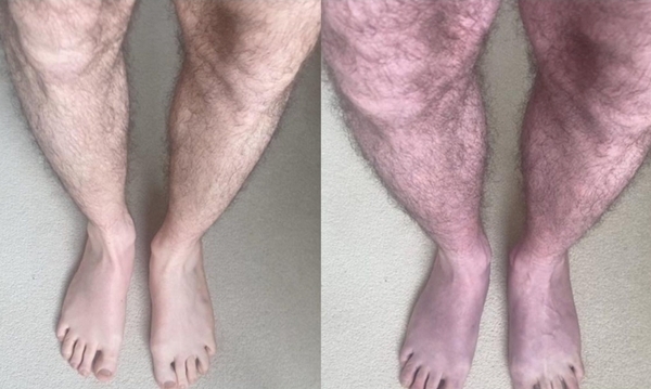 영국 리즈대 회복 의학과 교수 마노 시반 박사는 최근 이 같은 증상을 호소하고 있는 33세 남성 환자를 발견했다. 이 환자는 단시간이라도 서 있으면 다리의 혈관이 심각하게 부풀어 오르는 ‘말단청색증(acrocyanosis)’을 겪고 있어 병원을 찾은 것으로 알려졌다. 말단청색증이 있으면 손이나 발이 통증 없이 지속적으로 파랗게 변색되고 붓는 증상이 나타난다. 원인은 피부 내 작은 혈관들이 연축되는 것이며 보통 정서적 스트레스나 추위 노출에 대한 반응으로 보인다.