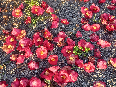 가지에도, 땅에도 선연한 진홍빛 핀