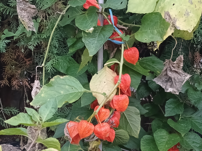 꽈리 열매의 꽃말은 “ 거짓말”이며, 꽃의 꽃말은 “수줍음”입니다.