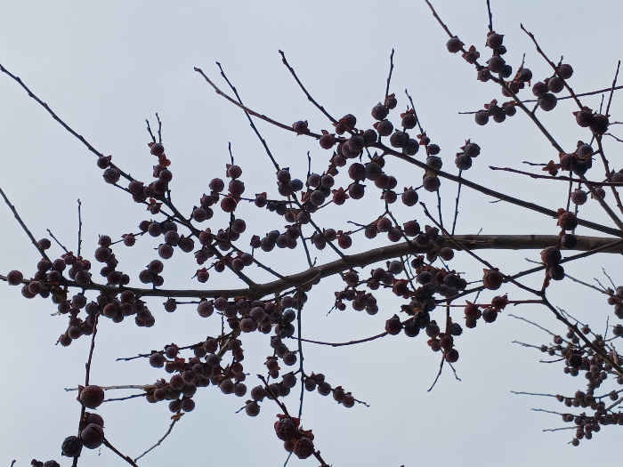 하지만 잎이 지고 마른 가지에 고욤만 매달려서 서리를 맞고