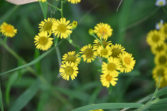 금불초(金佛草) 학명 : Inula britannica var. chinensis계 : 식물문 : 속씨식물강 : 쌍떡잎식물목 : 초롱꽃목분포지역 : 한국 ·일본 ·중국서식장소/자생지 : 습지크기 : 높이 30∼60cm 뿌리줄기가 뻗으면서 번식하는데 높이 30∼60cm이고 전체에 털이 나며줄기는 곧게 선다. 잎은 어긋나고 잎자루는 없으며,긴 타원형 또는 바소꼴로 잔톱니가 있다. 잎 길이 5∼10cm,나비 1∼3cm로 밑부분이 좁아져서 줄기를 싸며 양면에 털이 있다. 꽃은 7∼9월에 황색으로 피는데, 원줄기와 가지 끝에 달려 전체가산방상(揀房狀)으로 달린다. 총포는 반구형(半球形)이며 포린은 5줄로배열된다. 설상화는 길이 16∼19mm, 나비 1.5∼2mm이다. 수과(瘦果)는10개의 능선과 더불어 털이 있고..