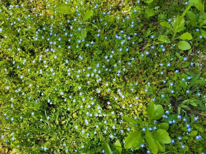 봄까치꽃 분 류 : 현화식물문 >목련강 >현삼목 >현삼과 >개불알풀속학 명 : Veronica persica Poir.이 명 : 큰개불알풀 , 큰지금, 왕지금꼬리풀, 왕지금, 봄가리꽃, 땅비단 유럽 원산으로 우리나라 전국에 분포된 두해살이풀이다 .줄기와 잎에 부드러운 털이 있다 . 여러 줄기가 갈라져 아래쪽이 비스듬히 자라며 ,키는 10-40cm 까지 자라며 , 주로 군락을 이룬다 . 잎은 아래쪽에서는 마주나지만 위쪽에서는 어긋나며 ,난상 원형으로 길이 7-18mm, 폭 6-15mm 이고 ,가장자리에 끝이 둔한 톱니가 3-5 개씩 있다 . 꽃은 잎겨드랑이에서 1 개씩 달리며 , 하늘색 , 지름 7-10mm 이다 .꽃자루 길이는 1-4cm 정도다 .꽃받침은 4 갈래로 갈라지며 ,..