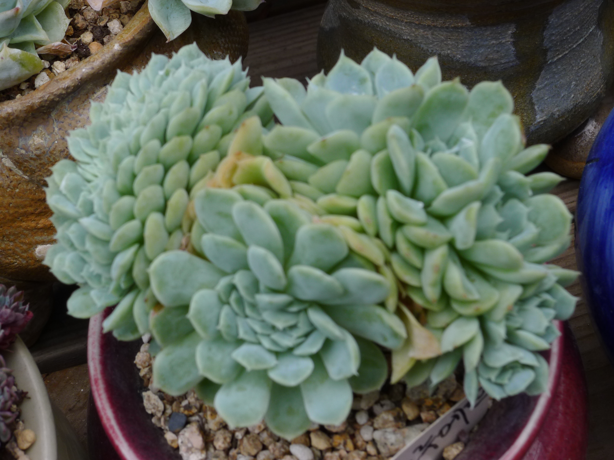블루엘프 분 류 : Sedeveria 속학 명 : Sedeveria 'Blue Elf' 에케베리아와 세덤의 속간 교배종같다(?)모양은 세데베리아 핑클루비를 많이 닮았고특성은 에케베리아의 라우린제를 닮은 듯하다. 로제트 크기는 6~7cm 정도사이즈로 자라는 소형종이며그린빛 잎장이 가늘고긴모양을 하고 있고(날씬하고 통통한) 잎끝은 살짝 뾰족하다 옥색빛 잎장이 짖은 핑크빛으로 물들고표면에 광택이 없으며 살짝 백분이 덮여 있다 개화시기는 3~4월에 노란색 꽃이 핀다. --- 출 처 : daum ---